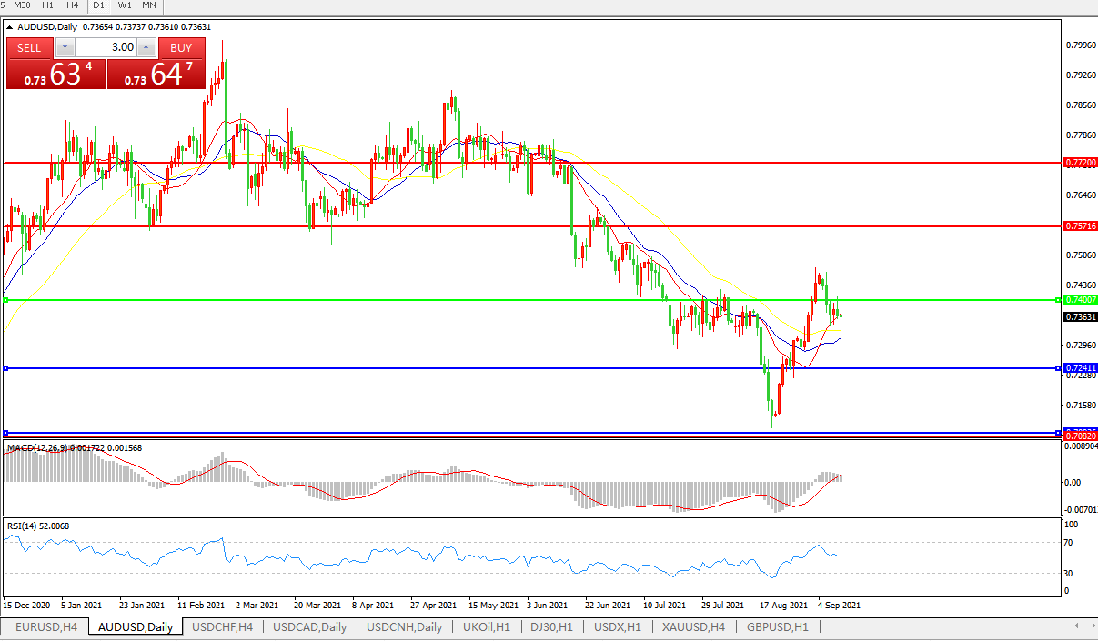 交易策略:0.7400下方看跌,目标0.7240、0.7080