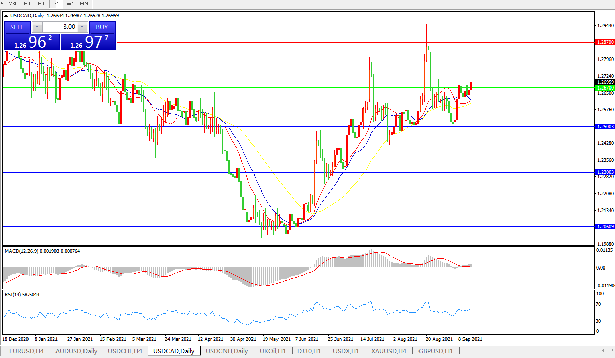 美元兑加元上涨0.36%至1.2694,因WTI原油缩减涨幅且加拿大2年期国债收益率下跌;围绕1.2644美元的对冲活动也影响了即期汇率。