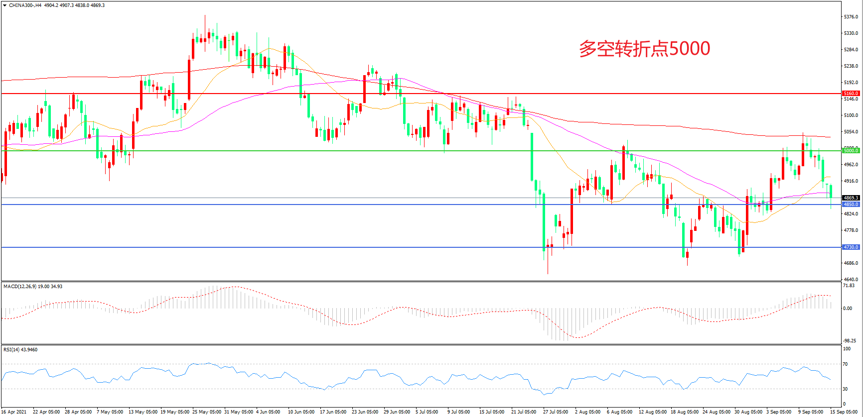 周三(9月15日),沪深两市全线低开,午后翻绿维持弱势窄幅震荡走势,沪深300破位下行,收报4869.3点,两市合计成交13546亿元,北向资金净流入21.4亿元。近期较为强势的周期类板块进入调整,部分人气高标成了杀跌主战场,若权重股不能能在近期维稳,节前或有更凌厉的下跌。