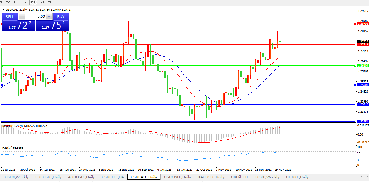 美元兑加元USDCAD 日线图:
