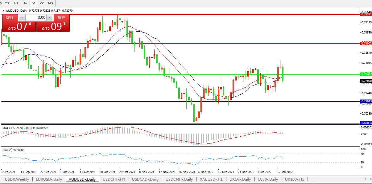 备选策略:0.7240上方看涨,目标0.7400、0.7550