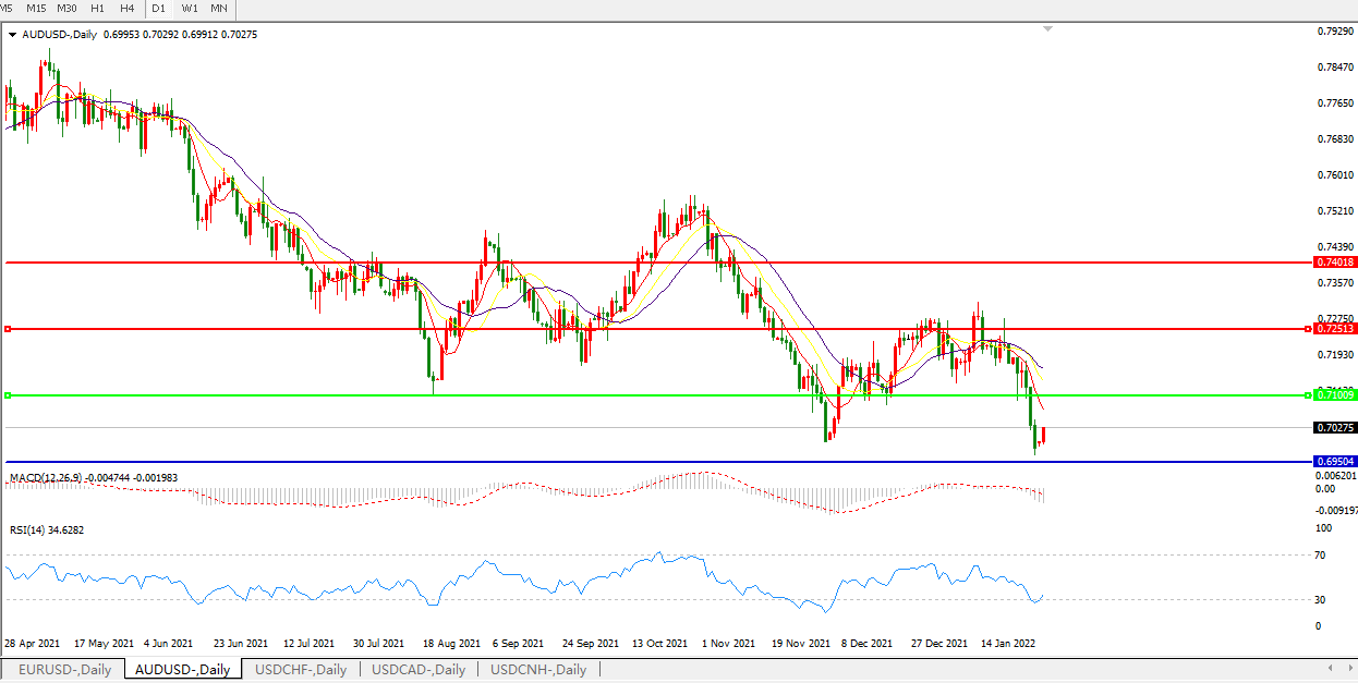 交易策略:0.7100下方看跌,目标0.6950、0.6800