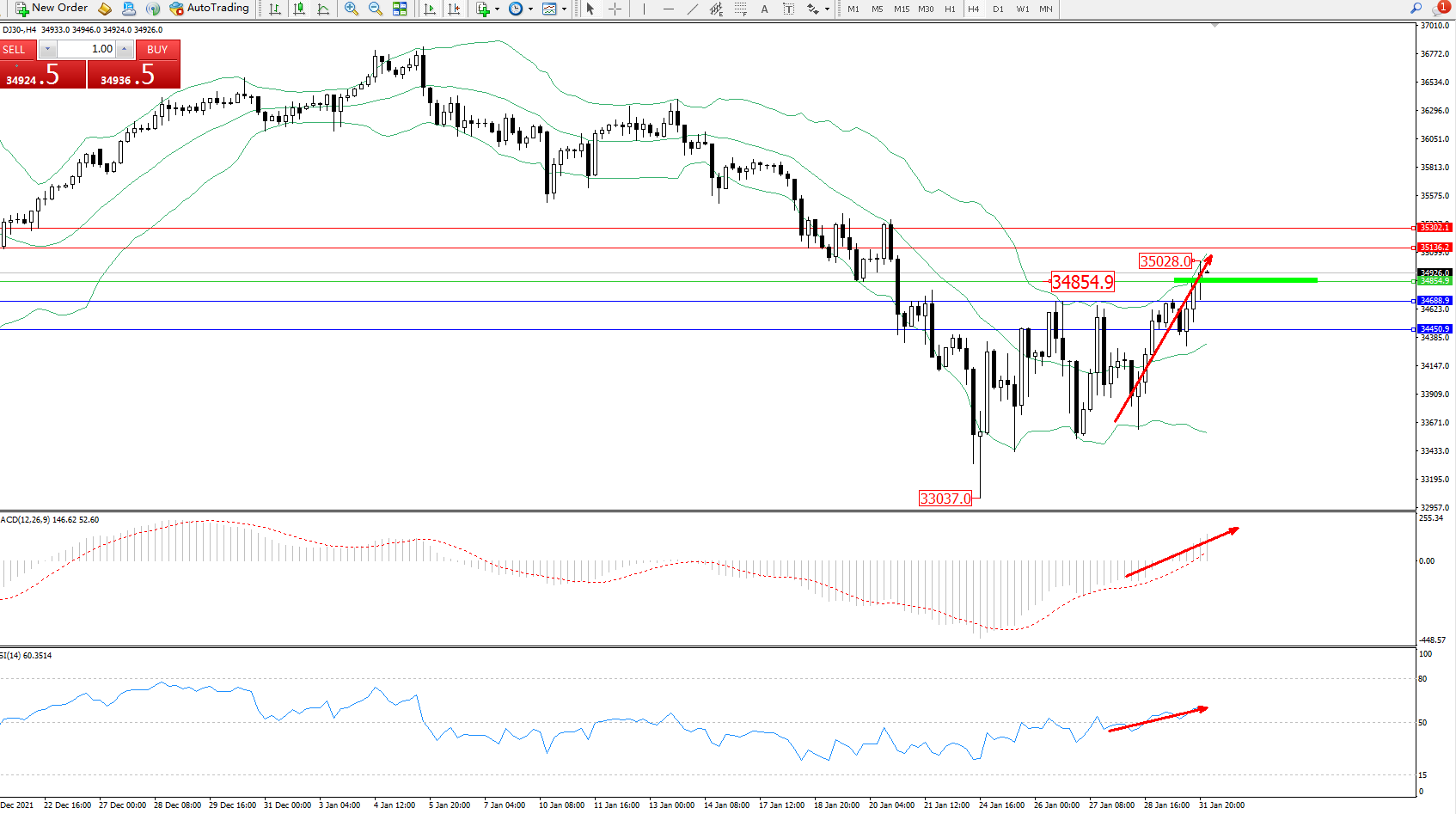 道琼斯指数1月31日(周一)收盘上涨405.99点,涨幅1.17%,报35131.46点;美国股市三大指数周一收高,结束了交投震荡的一个月,涨幅帮助以科技股为主的纳斯达克指数勉力避免了史上最差开年表现。成长股和科技股的估值愈发受到关注,在美国联邦储备理事会(美联储/FED)将开始加息以对抗通胀,并撤回其大流行刺激措施之际,投资者对估值过高的企业感到担忧。