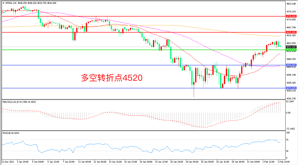 周三(2月2日),美国“小非农”ADP就业人数意外大降,但谷歌母公司Alphabet和AMD强劲的业绩暂时缓和了市场的担忧,标普500延续高位震荡,收报4544.75点。奥密克戎感染激增导致一些企业关闭和人们活动受限,加剧了劳动力市场的紧张,如果周五非农数据表现与ADP一致,可能会导致美股产生巨大波动。