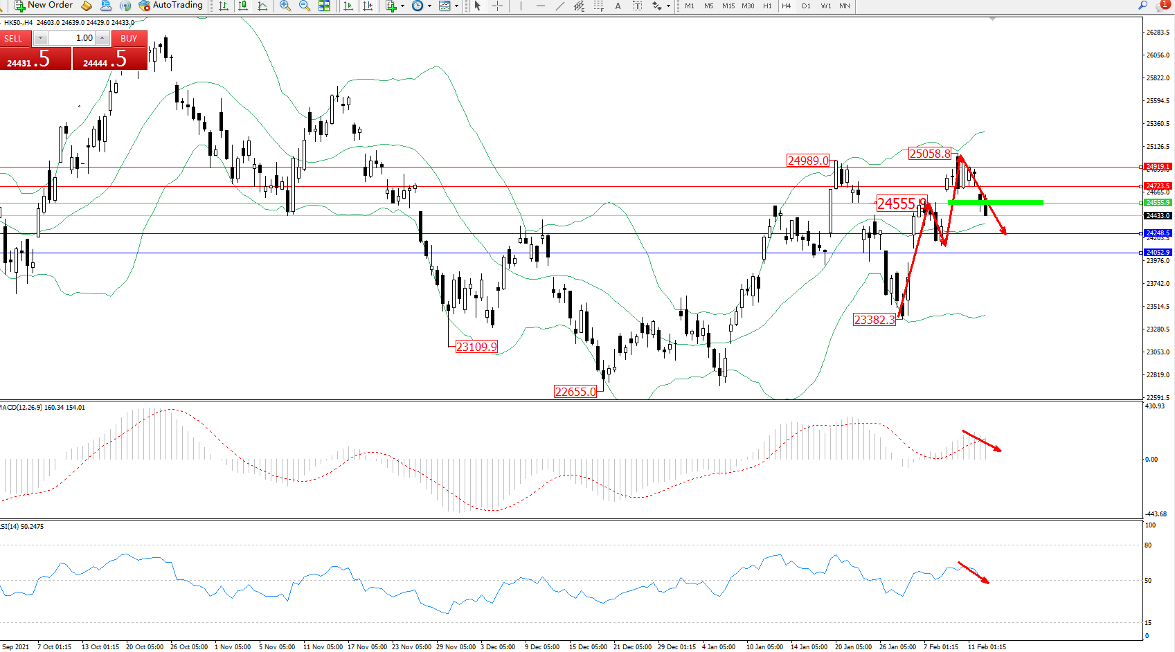 香港恒生指数2月14日(周一)收盘下跌350.09点,跌幅1.41%,报24556.57点;港股指数全天表现低迷,因乌克兰局势紧张,全球风险市场下挫。恒生科技指数跌1.7%。大型科技股表现萎靡,网易跌超4%,美团、京东、阿里巴巴跌超3%,快手跌2.8%,腾讯等皆走低;南下资金净流出7.01亿港元,大市成交额为1138亿港元。香港财政司司长陈茂波在网志上表示,面对目前困难时期,维持经济及金融稳定也极为重要,特别是外围环境也在急速变化,须防范资金流或市场情绪的突然逆转,尤其是美国通胀持续升温。这次美国的加息周期对香港金融及货币稳定带来的风险可控,而过去多年来为金融市场建立的缓衝及实施的抗震措施,依然发挥著作用。基于香港银行体系流动资金充裕,银行体系总结余达到3500亿港元,估计即使美国加息,资金流向变化亦不至令港元拆息紧随向上。