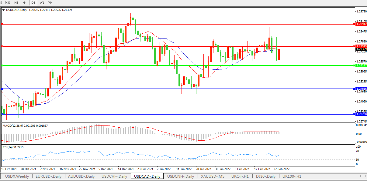 美元兑加元USDCAD 日线图: