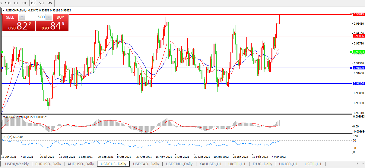 欧币上涨美元强势,美元兑瑞郎继续上攻