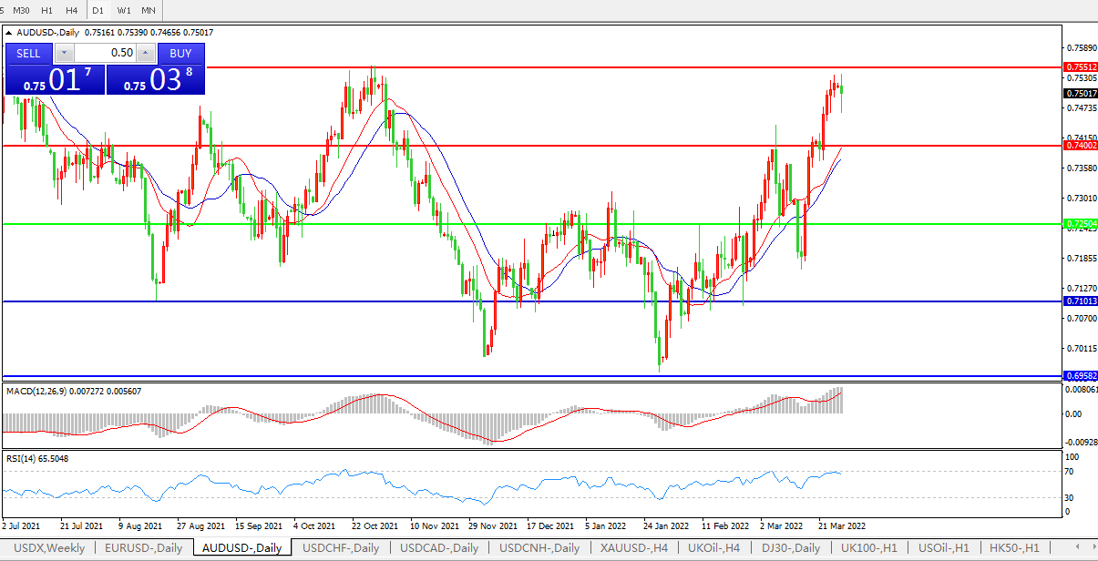连续涨势稍微停滞,澳元兑美元小幅回落
