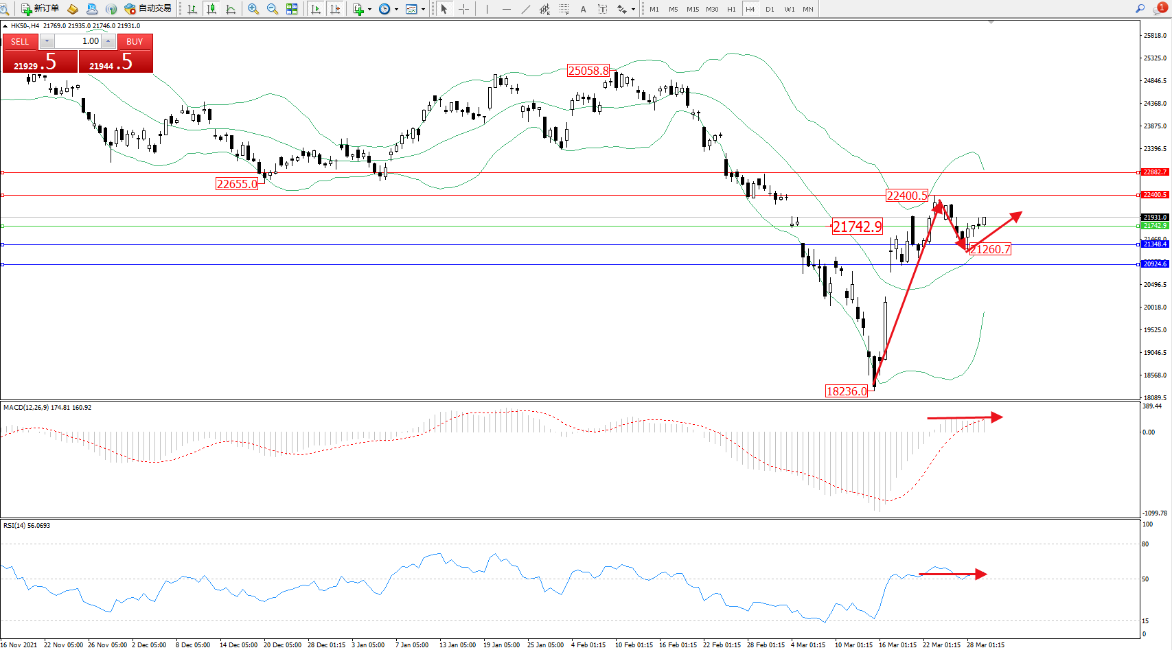 香港恒生指数3月29日(周二)收盘上涨242.66点,涨幅1.12%,报21927.63点;港股三大指数全天走强,恒生科技指数涨2.52%重上4600点。南下资金净流入7.97亿港元,大市成交额为1251亿港元。大型科技股普遍强势,京东涨6%,美团涨5.78%,快手涨4.6%,腾讯、百度、阿里巴巴均涨超2%;据彭博引述金融及数码资产行业的猎头公司、行政人员及雇主消息,指香港仍未与外国通关下,行业人才短缺,短期需要加薪挽留人才。猎头公司ESGI董事总经理Christine Houston说,相对一年前,金融专才更抢手,传统上金融机构一般会加薪15%来挽留人才,现时加幅料升到20%至30%。去年净离开本港人数超过14万人,创历来新高。彭博又引述一家华尔街大行高层指,离职潮意味销售及交易部门的中层员工,自去年6月转到其他公司以来,薪酬已上升25%至35%。香港政府去年向外国金融从业员批出的新签证数目降至2,569份,较2018年减少近一半。
