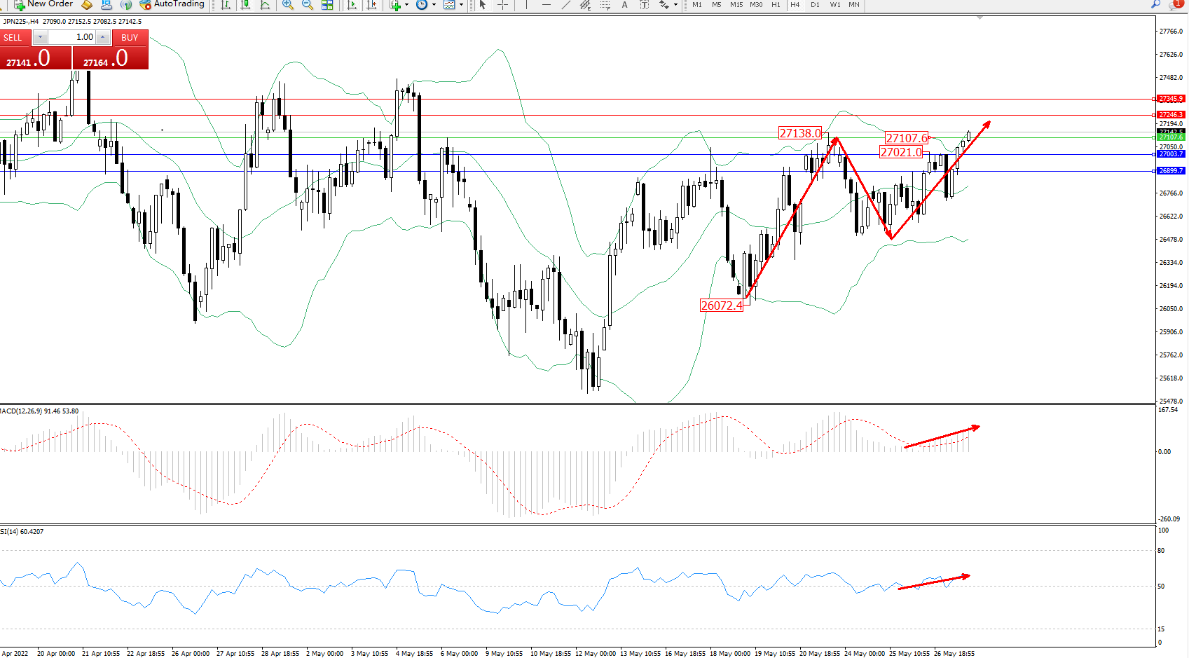 日经225指数5月27日(周五)收盘上涨178.16点,涨幅0.67%,报26783.00点。日本半导体设备协会(SEAJ)公布统计数据显示,2022年1-4月日本芯片设备销售额同比大幅增长37%至12213.99亿日元,创历年同期新高纪录。