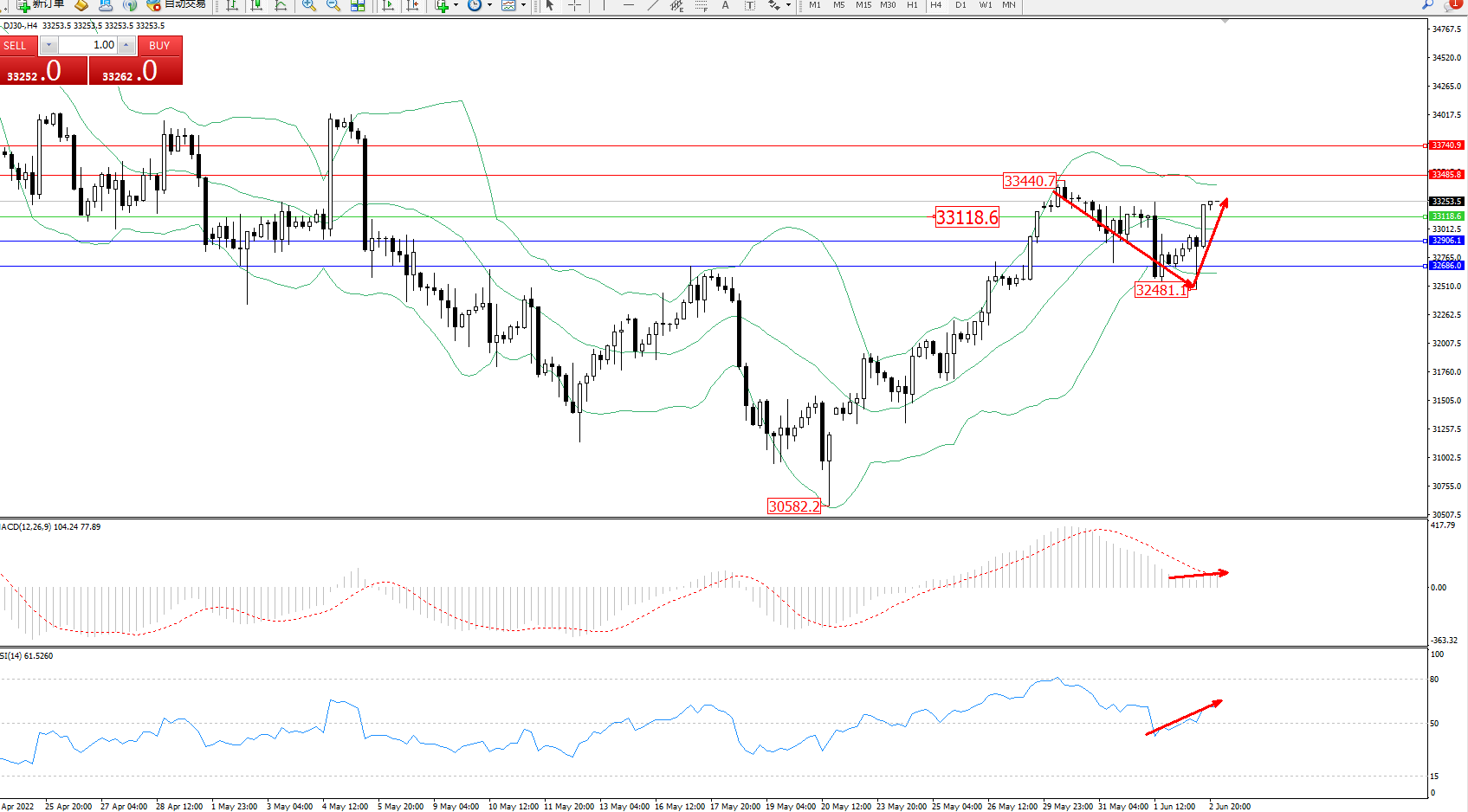 道琼斯指数6月2日(周四)收盘上涨435.05点,涨幅1.33%,报33248.28点;美股收盘,道指初步收涨,美联储副主席布雷纳德:随着时间的推移,预计经济会有所降温。此外,我们将采取必要措施降低通货膨胀。