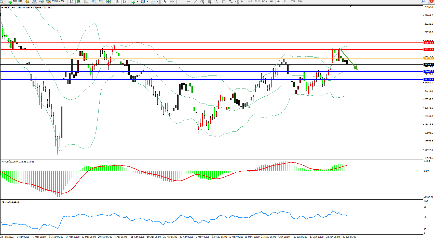 恒指HK50 4小时图