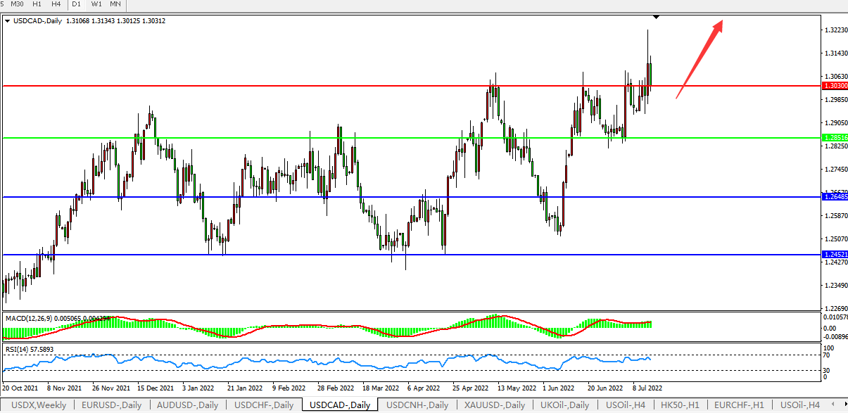 美元兑加元本周创2020年11月上旬以来新高至1.3222,但加拿大央行深化鹰派姿态,限制了加元跌势,汇价目前运行在1.31关口下方。