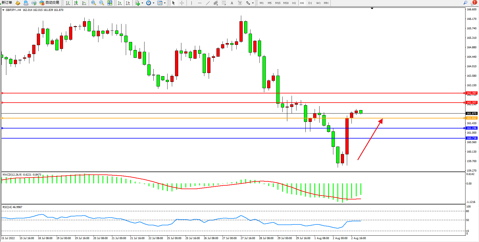 英镑兑日圆维持161.856附近震荡,英国公众7月对5-10年内的通胀预期下降,是四个月中第三个月出现下降,尽管按照历史标准,3.8%的预期仍然很高。这是英国央行最看重的指标。英国央行的利率制定者可能会觉得应该将利率提高50个基点,尽管存在经济放缓或衰退的风险。