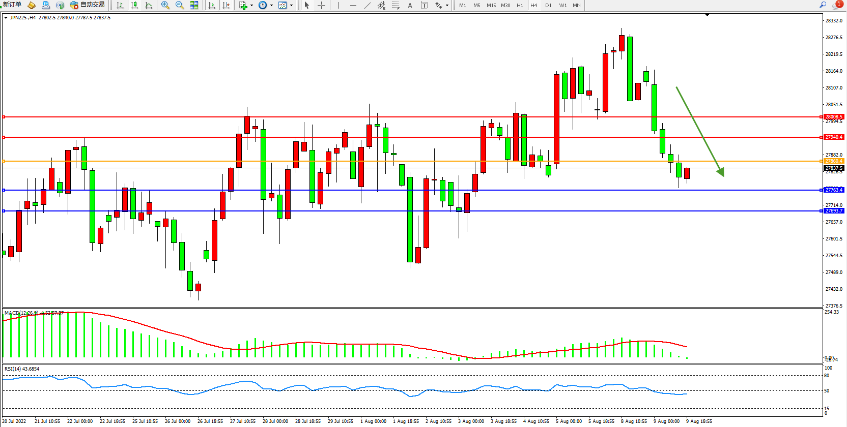 日经225指数8月9日(周二)收盘下跌244.74点,跌幅0.87%,报28004.50点。日本环境省8日基本决定,在下年度预算概算要求中,申请列入400亿日元(约合人民币20亿元)作为补贴发放给开展去碳化项目的地方政府。发放对象包括根据太阳能、风力等地区特性引进可再生能源以及建筑物的节能化等。