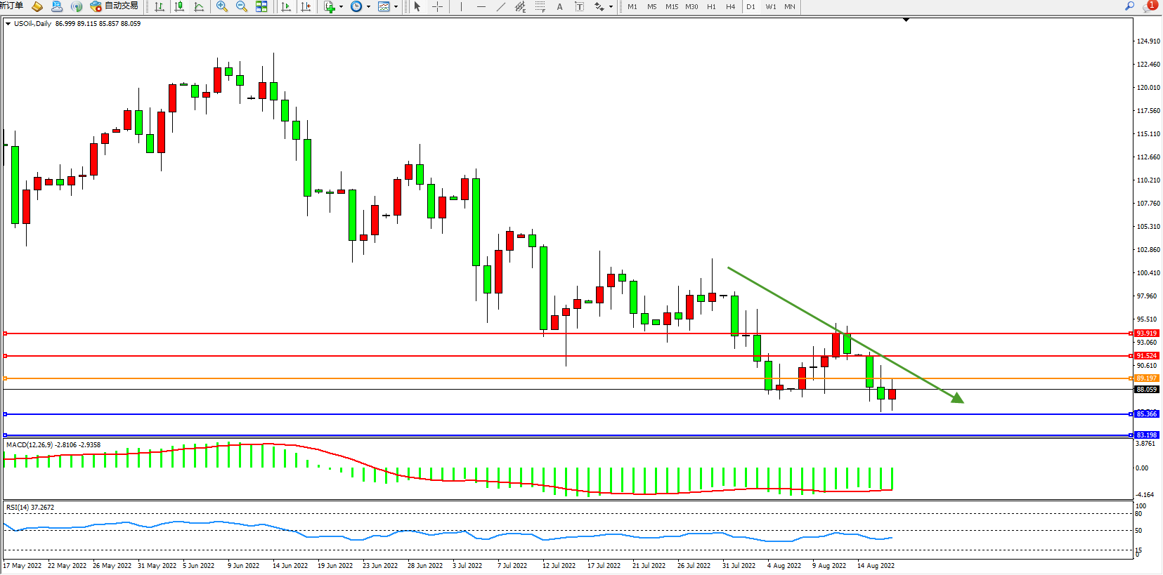美油:空头阶梯式震荡下行