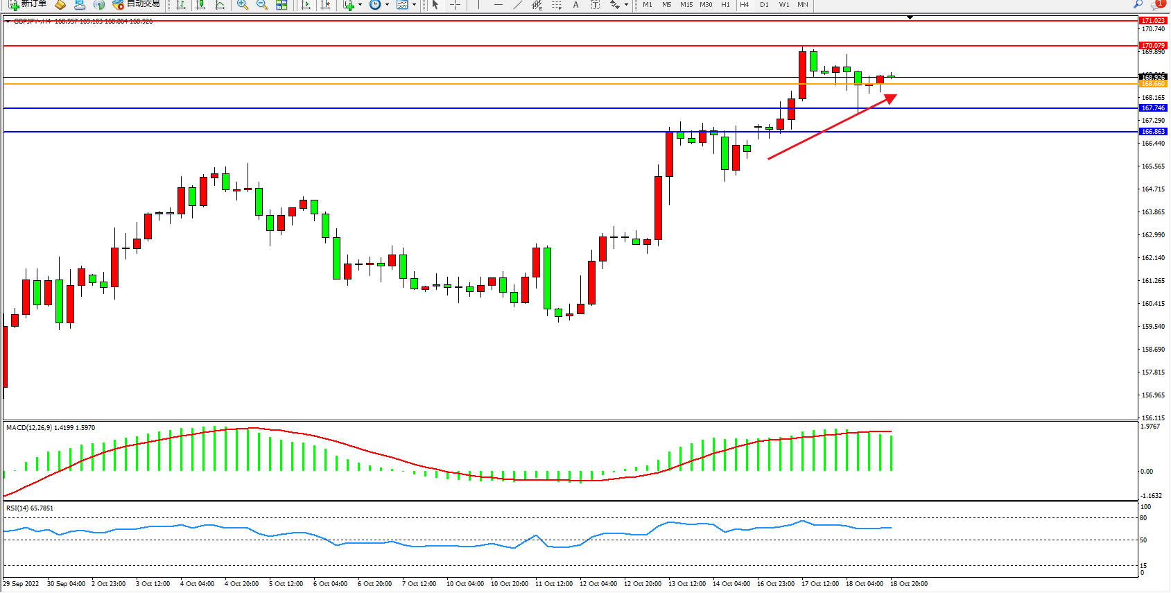 交易策略:168.660上方看涨,目标170.079、171.023