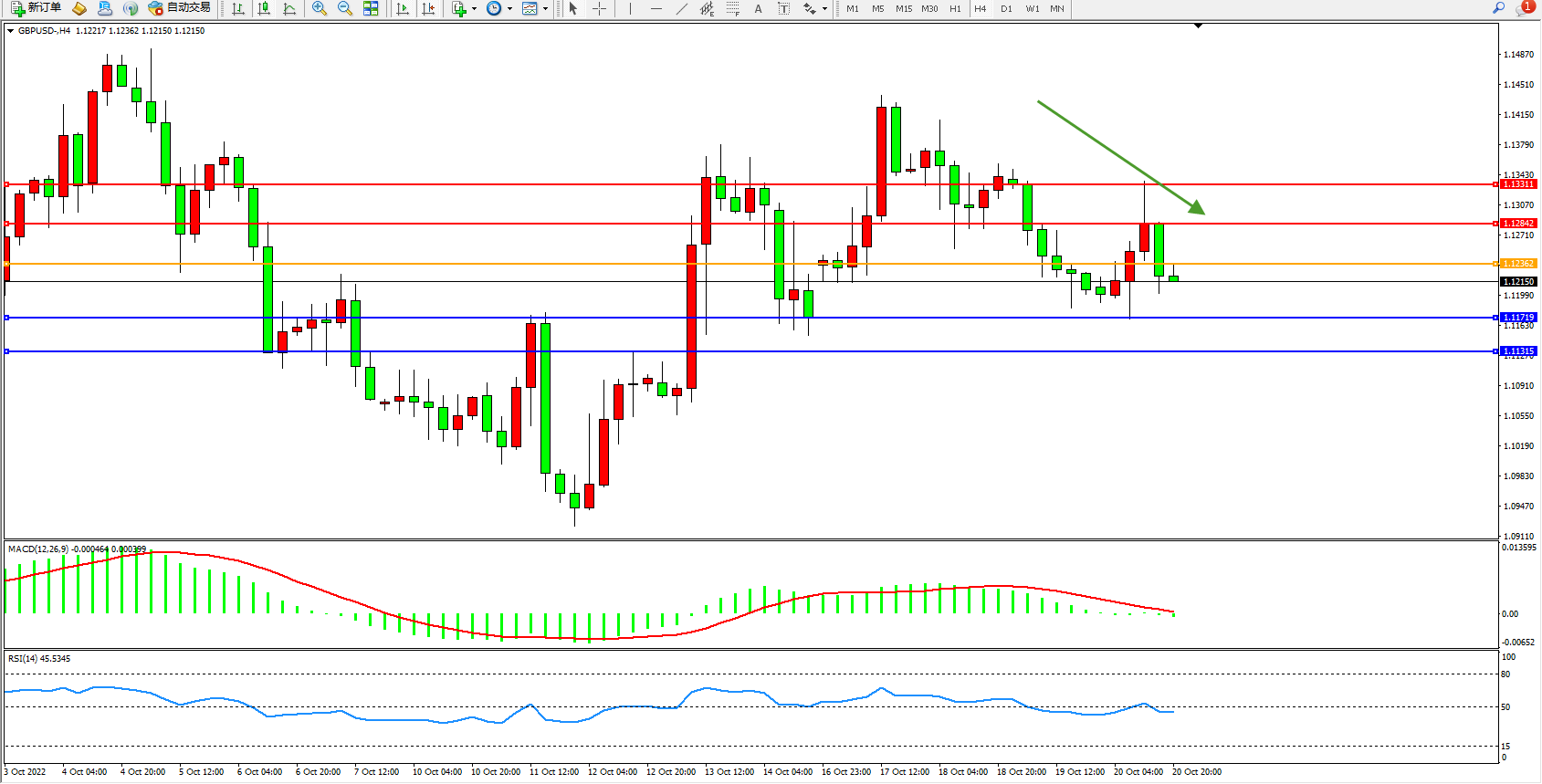 英镑美元GBPUSD ——4小时K线图显示: