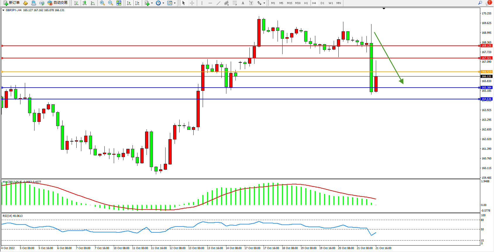 英镑日圆GBPJPY——4小时K线图显示: