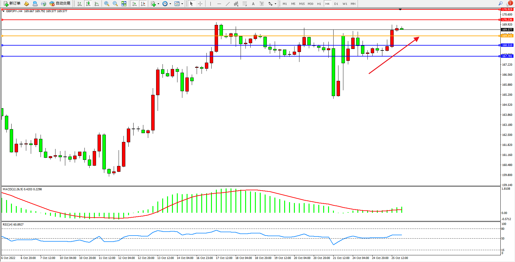 交易策略:169.143上方看涨,目标170.236、170.919