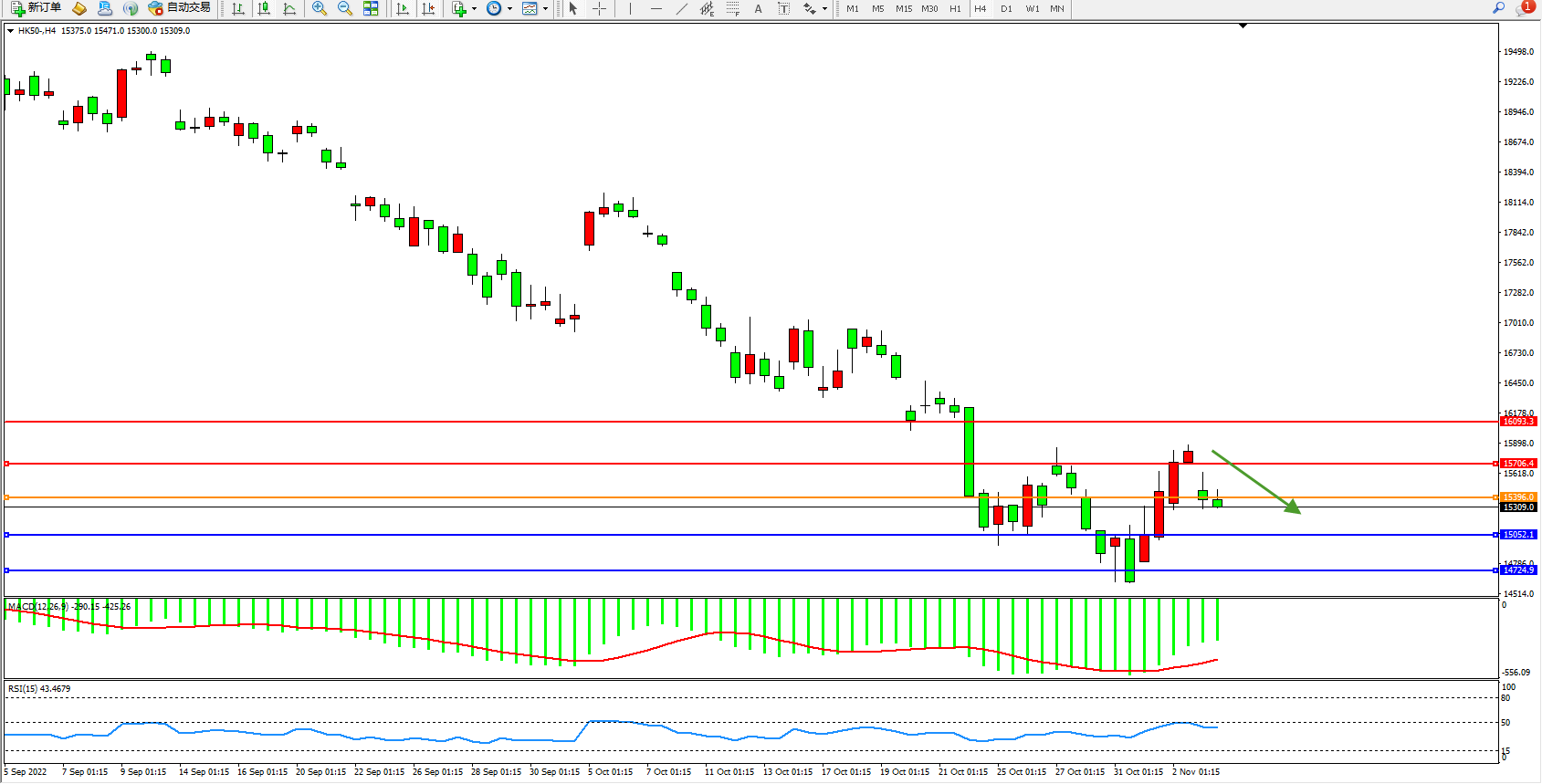 恒指HK50 4小时图