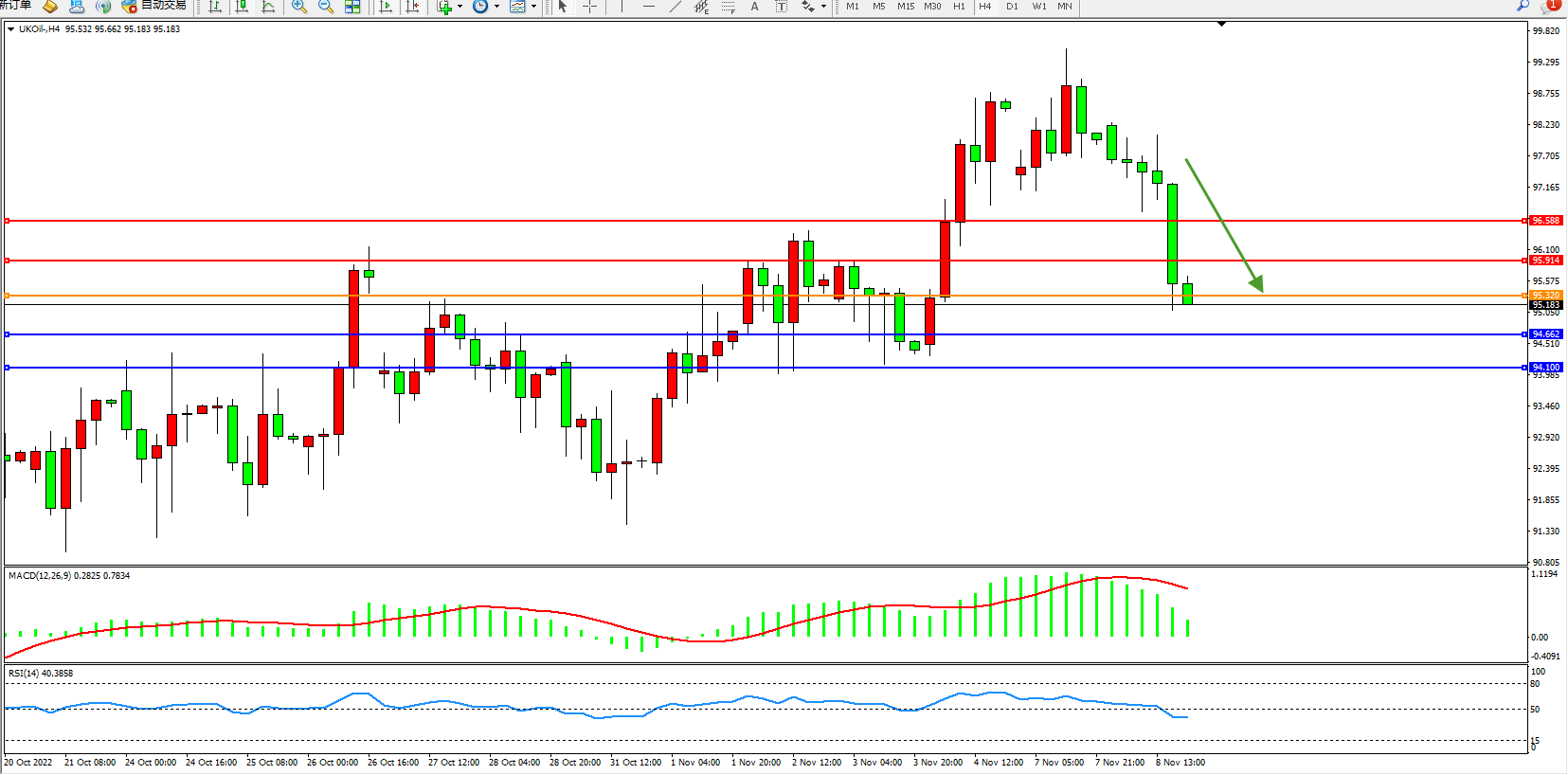 布油UKOil——4小时K线图显示: