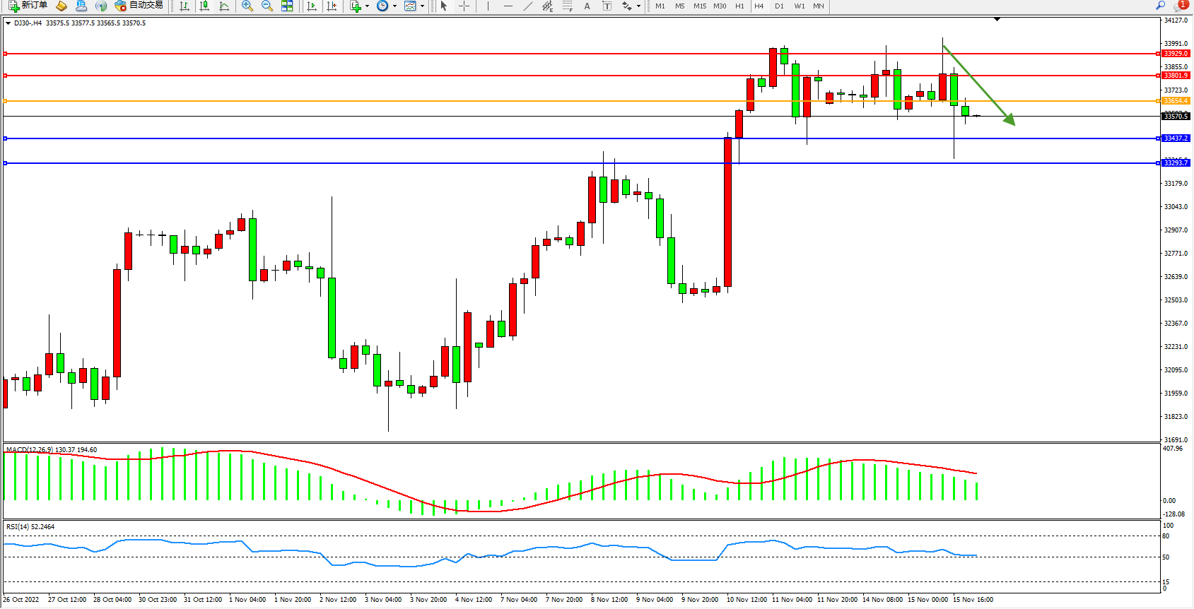 道琼斯指数11月15日(周二)收盘上涨57.47点,涨幅0.17%,报33594.17点;美国公布的10月PPI数据明显不及预期和前值,强化了美联储激进鹰派政策松动预期。美国10月总体PPI年率录得8%,预期值和前值分别为8.30%和8.50%;美国10月核心PPI年率录得6.70%,预期值和前值均为7.20%。