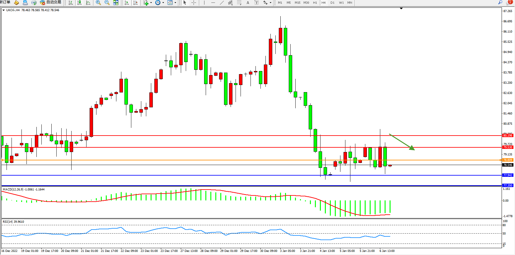 布油UKOil——4小时K线图显示:
