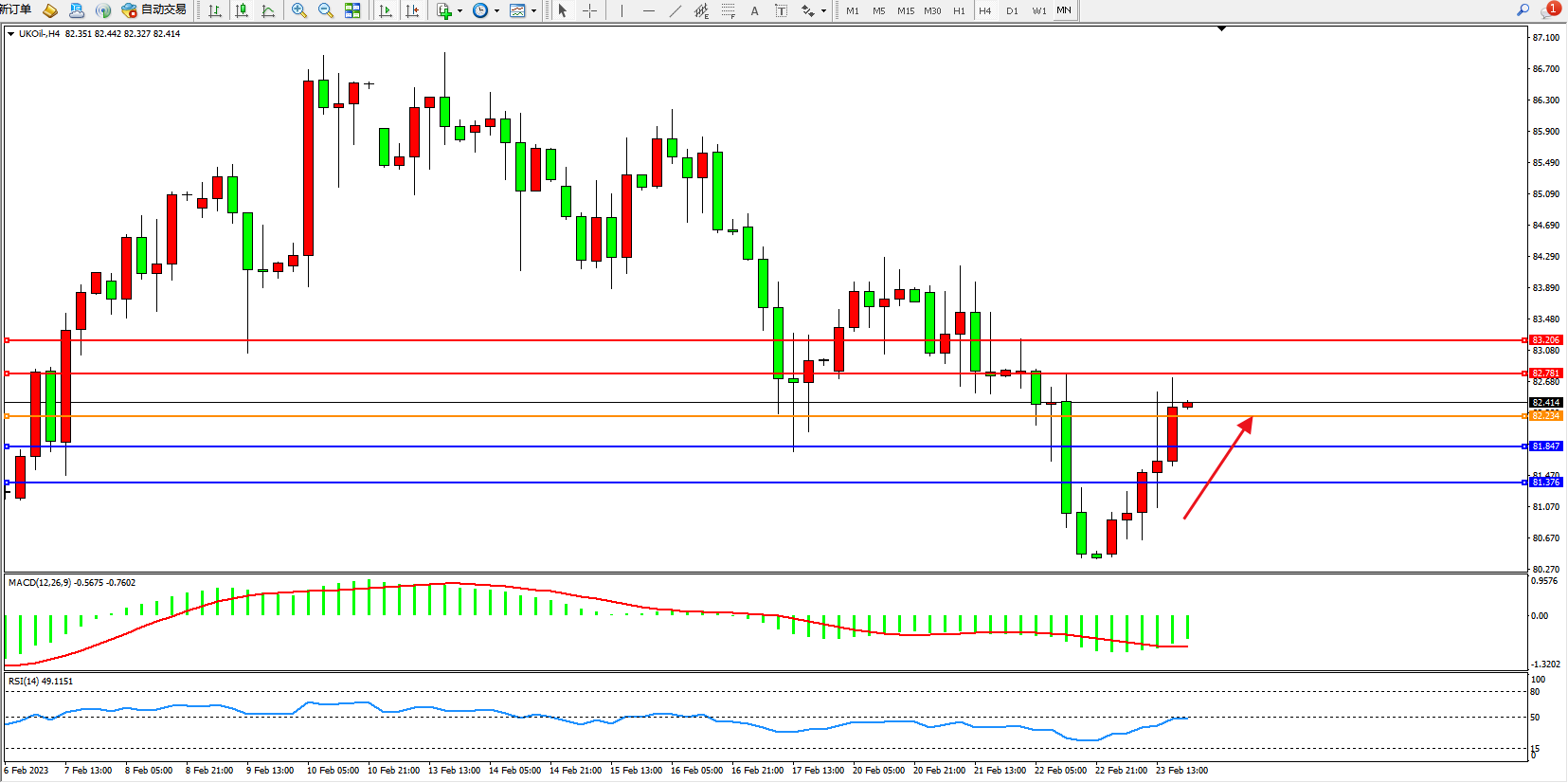 布油维持82.422附近震荡,美国至2月17日当周EIA原油库存 764.8万桶,预期208.3万桶,前值1628.3万桶。美国至2月17日当周EIA战略石油储备库存 0万桶,前值0万桶。