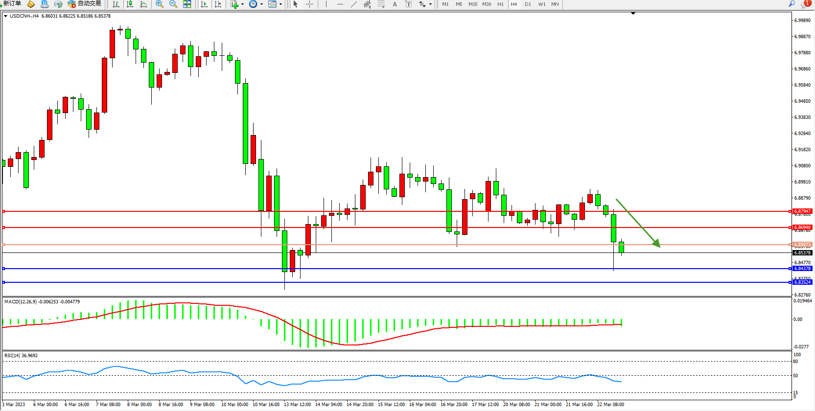 交易策略:6.85873下方看跌,目标6.84378  6.83524