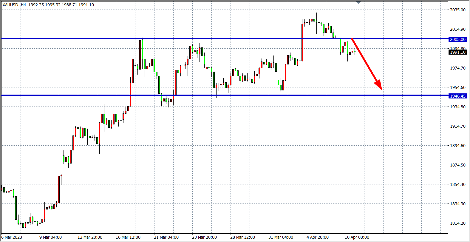 现货黄金XAUUSD 四小时图