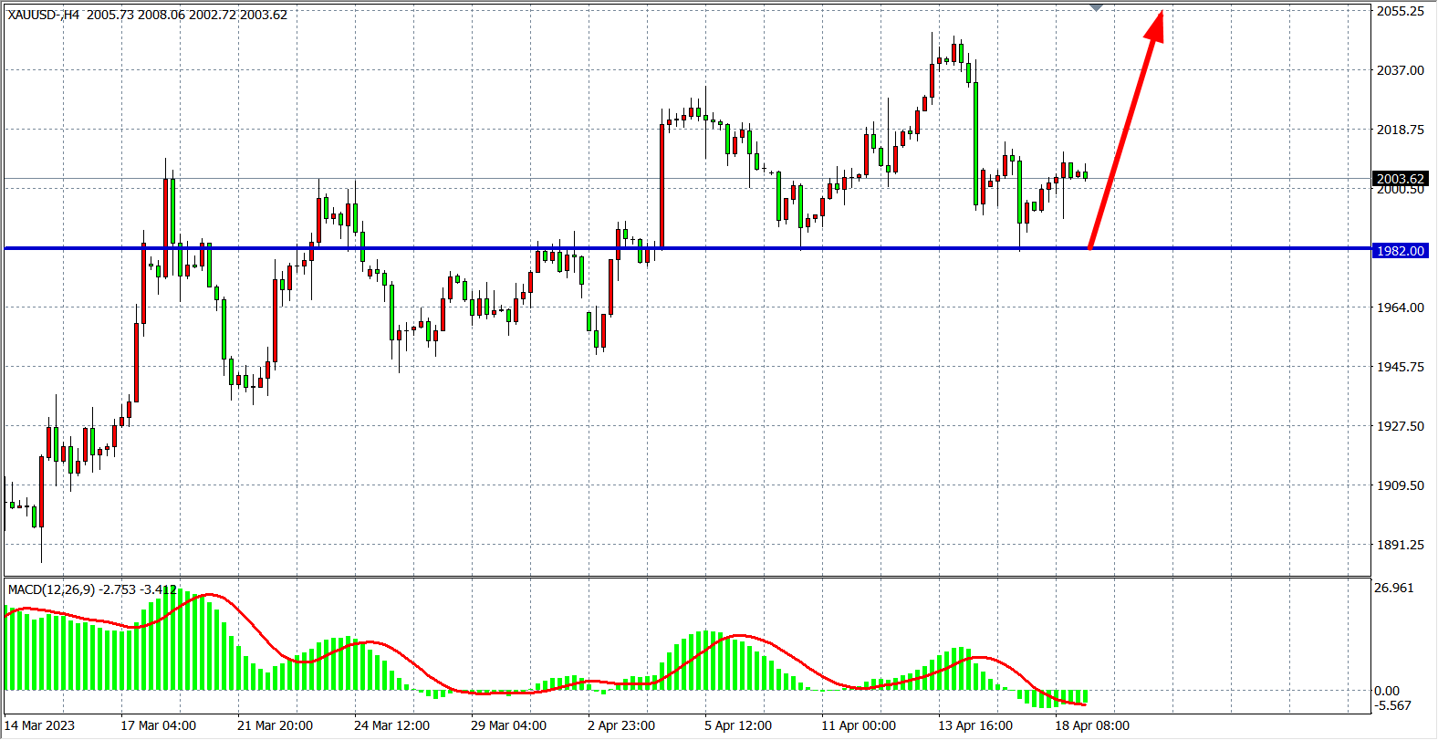 现货黄金XAUUSD 四小时图