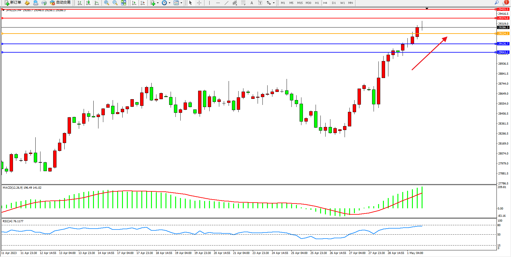日经225指数5月1日(周一)收盘上涨278.06点,涨幅0.96%,报29134.50点。韩日正就韩国总统尹锡悦和日本首相岸田文雄7日在首尔龙山总统府会晤的事宜进行最终协调沟通。双方正在讨论明日同步公布岸田文雄访韩和韩日首脑会谈日程的方案。