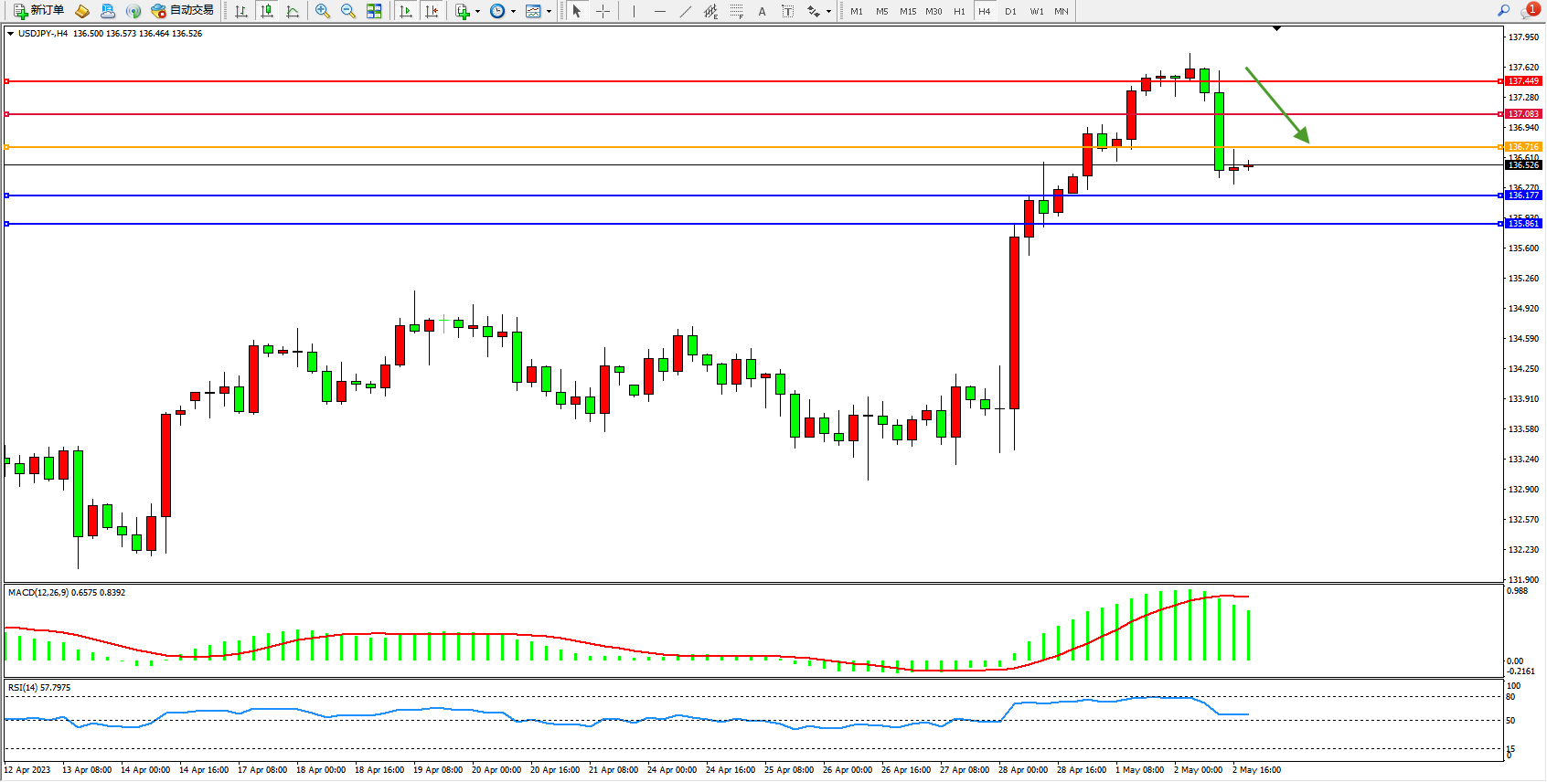4小时图看:高位空头动力快速下移,市场空头情绪笼罩,短期跌势或将持续,MACD指标处于多头区域震荡下移,RSI指标处于50吉星好上側弱势徘徊;