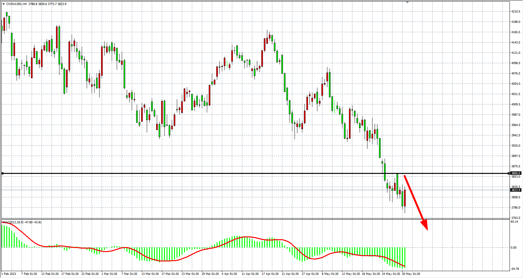 4小时图看,沪深300进一步下探,最低跌至3773附近,MACD量能在零轴下继续放量,趋势继续维持空头下行,当前阻力继续关注3860附近,在该位之下继续看空为主。