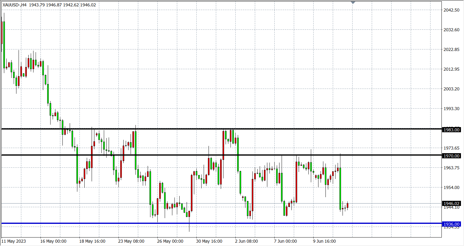 周二(6月13日)美国通胀仍呈下行趋势,黄金日内巨震30美元,收跌0.72%