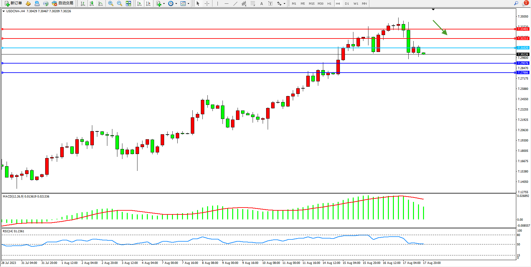 备选策略:7.31020上方看涨,目标7.32211  7.33401