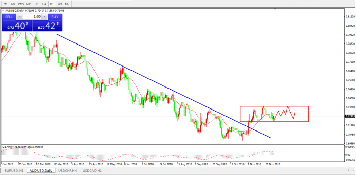 交易策略:整理持续中,考虑0.7270-0.7190区间高抛低吸 。