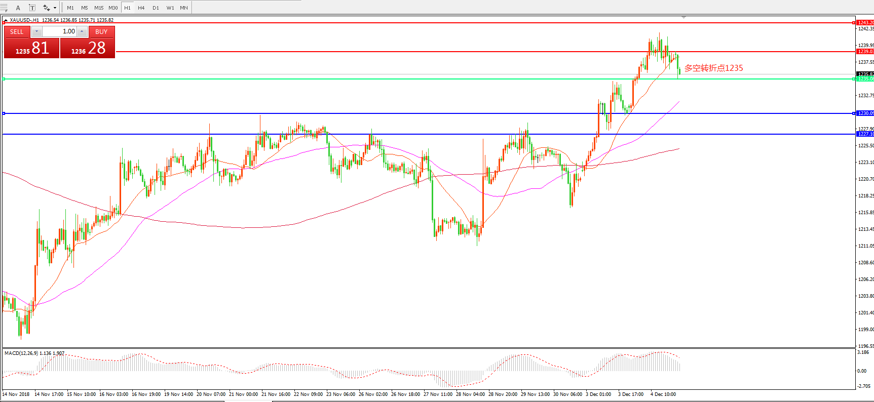 交易策略:在1235.00之上看涨,目标1239.00 1243.20