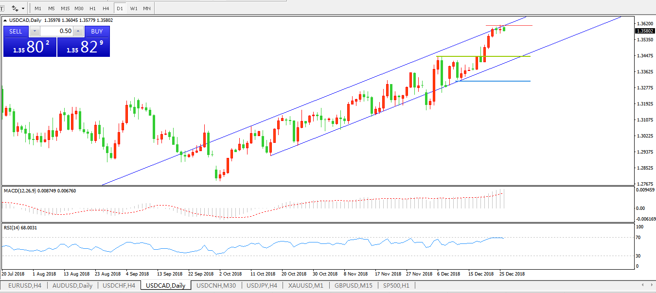 美元兑加元USDCAD日线图