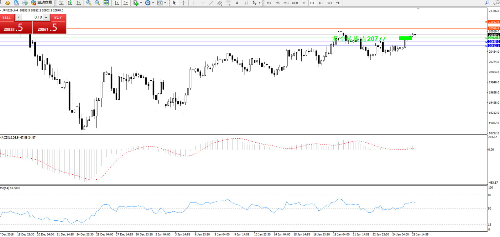 日经指数JPN225——4小时K线图: