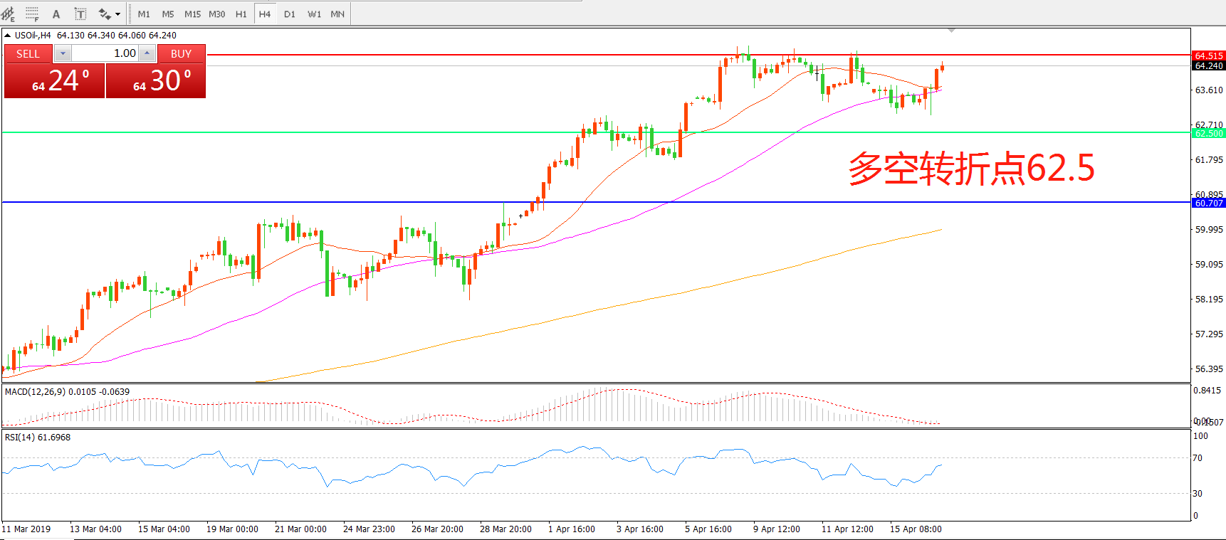 交易策略:在62.50之上看涨,目标64.50 66.50
