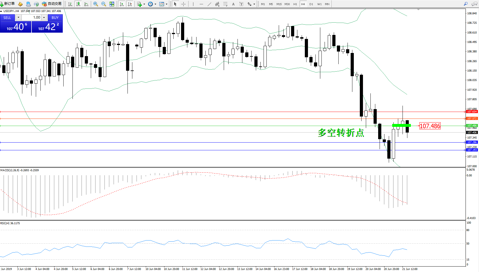 由于伊朗和美国之间的紧张局势不断加剧,使得避险日元获得市场青睐,美元兑日元大幅走弱,最低触及107.03,为13日以来新低。伊朗称将在627日超过核协议规定的低浓缩铀储备上限;然后美国军用无人机被伊朗对空导弹击落在霍尔木兹海峡上空的国际领空;虽然特朗普淡化伊朗攻击,但据报道他曾批准打击伊朗,不过之后又撤回决定。此外,美国还将向中东增派大约千人的部队,这些都令地缘局势升温。有消息称,特朗普搁置了对伊朗的导弹袭击,且更愿意与德黑兰进行对话,尤其是在伊朗核计划问题上。但伊朗方面目前拒绝了这一提议,因此形势仍然很紧张。