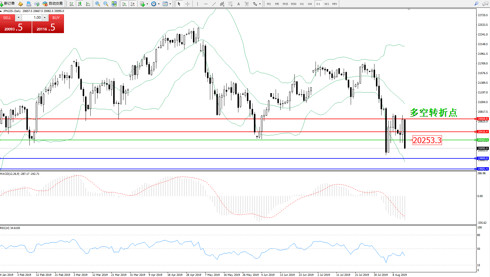 日经225指数814日(周三)收盘上涨168.56点,涨幅0.82%,报20624.00点。关于国际贸易关系缓和、谈判将会继续的消息提振了市场情绪。投资者密切关注美国国债收益率动态。美国国债收益率曲线倒置,为2007年美国次贷危机加剧以来首见,这显示了全球最大经济体可能滑入衰退。美联储防止美国经济陷入衰退的力量可能会减弱,到202110年期美债收益率可能下跌至零。