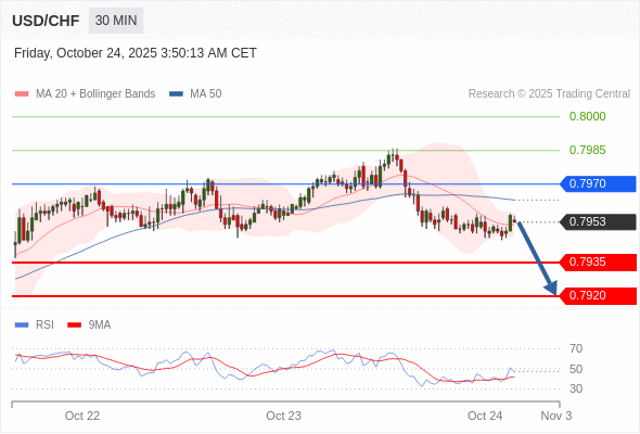 在 0.7970 之下,看跌,目标价位为 0.7935 ,然后为 0.7920 。