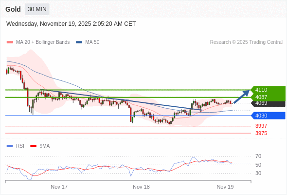 在 4030 之上,看涨,目标价位为 4087 ,然后为 4110 。