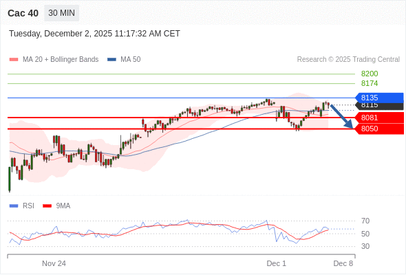 Cac 40 当日内: 短期关键阻力位在8135。