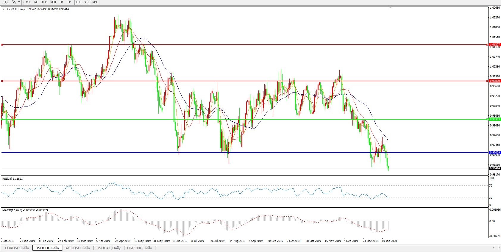 澳洲国民银行(NAB)周三(1月15日)发布技术分析报告指出,美元指数周线若收于96.91下方,将成为中期内大幅跌势的触发点;该行分析师表示,在2019年第四季度中有两个月美元出现了大幅下滑,但目前仍未跌破上行通道,关键点位于95.85;不过市场还需保持耐心,月线图上RSI指标已经测试过长期趋势阻力,因此跌势的开启已经箭在弦上; 今年1月出现的反弹或类似于去年11月的短线回升;周线图上96.91自2018年第三季度以来一直支持着美元指数,因此若跌破此处恐开启中期内的大幅跌势