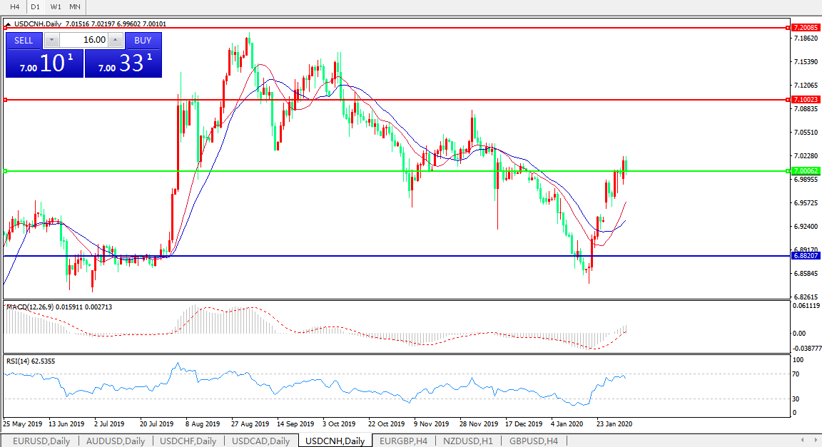 交易策略: 在7.0000之上,看涨,目标价位为7.1000,然后为7.2000。