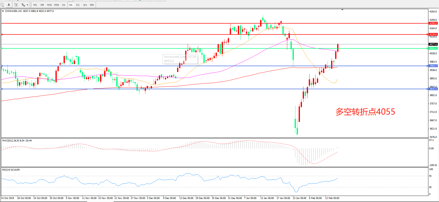 多空转折点:4055.00